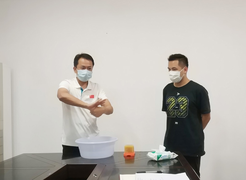 演練結(jié)束后,援喀醫(yī)療隊(duì)專家一行進(jìn)行了總結(jié)點(diǎn)評(píng)。方寧對(duì)整個(gè)演練活動(dòng)總體予以了肯定,并針對(duì)需要注意的問(wèn)題,提出了相應(yīng)的改進(jìn)意見。他還分享了日常生活中的防疫心得體會(huì)和竅門,向大家現(xiàn)場(chǎng)演示了“七步洗手法”和口罩的正確佩戴方法。王海濤醫(yī)生也對(duì)防疫工作的改進(jìn)提出了寶貴建議。
