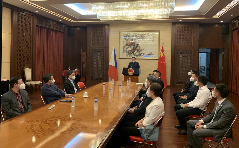 與會中資企業(yè)代表積極回應,表示使館在抗疫關鍵時期組織此次活動意義非凡,令人倍受鼓舞,倍感振奮。在菲中資企業(yè)將繼續(xù)在使館的指導下,團結一心,積極作為,踐行責任擔當,為當?shù)乜挂叨窢幒蛷凸彤a(chǎn)貢獻力量。