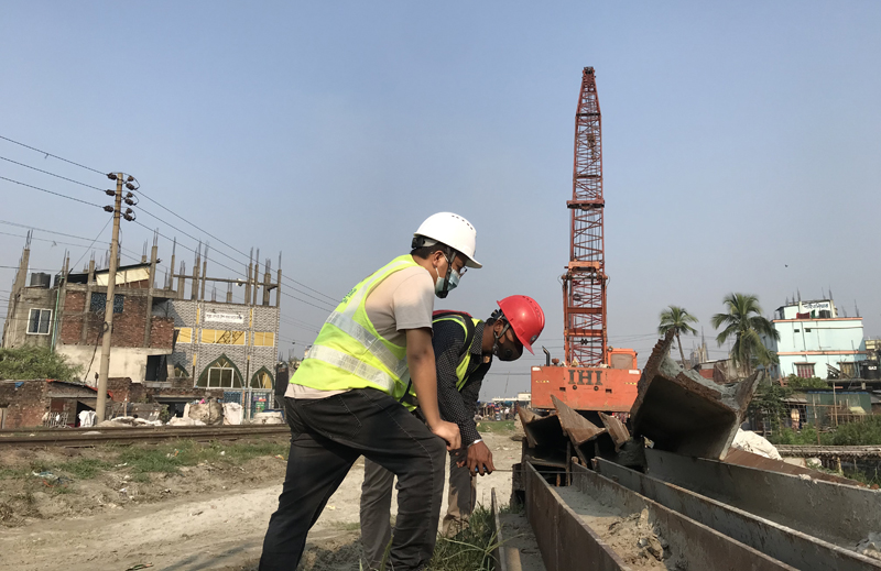 轉眼,孟加拉國達卡至納拉揚甘杰鐵路項目正式復工已經一個多月了。10公里施工線在休眠7個月后重新活躍起來,星羅棋布的10個作業面“綴滿”了印著中國電建logo的安全帽和反光衣。防疫措施保障有序,質量、安全雙翼助力,項目復工復產工作從“局部試點”、“小步慢走”再到“穩步推進”,用工人數逐步增加,施工日漸趨于正常,全面復工的局面已經形成。項目團隊正在搶抓黃金施工期,力求最大幅度降低新冠肺炎疫情所造成的損失,努力朝著年度經營目標邁進。