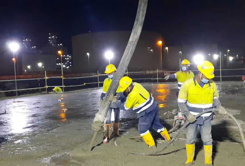 中國電建新加坡大士污水處理廠項(xiàng)目澆筑第一倉大體積底板混凝土