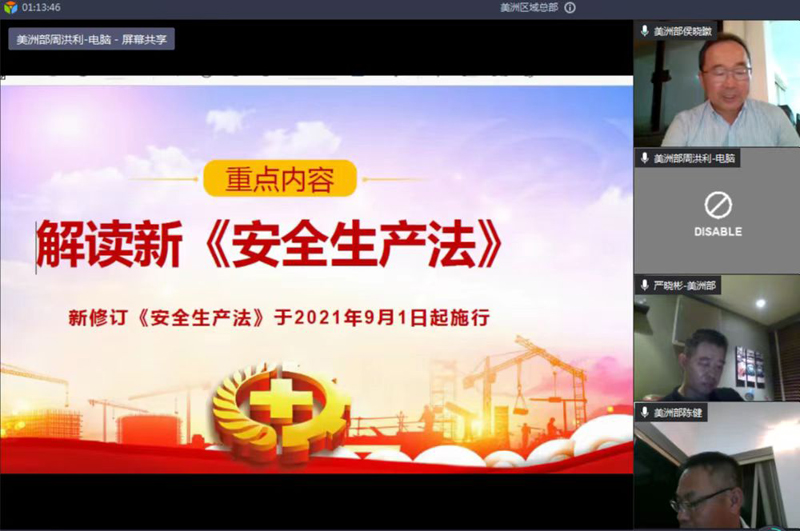 6月8日,公司副總經(jīng)理、美洲區(qū)域總部總經(jīng)理侯曉暾組織開展區(qū)域總部“安全生產(chǎn)月”啟動(dòng)儀式,期間套開美洲區(qū)域總部2022年第二次HSE管理委員會(huì)會(huì)議。HSE管委會(huì)領(lǐng)導(dǎo)小組聽取了區(qū)域總部上半年安全生產(chǎn)管理工作完成情況以及下半年工作計(jì)劃,對(duì)繼續(xù)深入開展安全生產(chǎn)標(biāo)準(zhǔn)化、QHSE監(jiān)督檢查和專項(xiàng)安全生產(chǎn)任務(wù)作出進(jìn)一步安排,審議通過(guò)了管委會(huì)成員調(diào)整事宜。“安全生產(chǎn)月”啟動(dòng)儀式上,侯曉暾切實(shí)履行“一崗雙責(zé)”“安全第一責(zé)任人”職責(zé),結(jié)合“安全生產(chǎn)月”活動(dòng)主題,深入解讀新《中華人民共和國(guó)安全生產(chǎn)法》,號(hào)召全體領(lǐng)導(dǎo)干部認(rèn)真學(xué)習(xí)新安法規(guī)定,以優(yōu)異的表現(xiàn)貫徹落實(shí)“三管三必須”。區(qū)域總部副總經(jīng)理嚴(yán)曉彬傳達(dá)了集團(tuán)公司深刻吸取事故教訓(xùn)從嚴(yán)從實(shí)抓好事故防范工作的要求,深刻剖析了公司2022年以來(lái)發(fā)生的境外安全生產(chǎn)和社會(huì)安全事件,以沉痛的安全事件為教訓(xùn),為區(qū)域總部境外項(xiàng)目安全生產(chǎn)和保障人身安全敲響警鐘。
